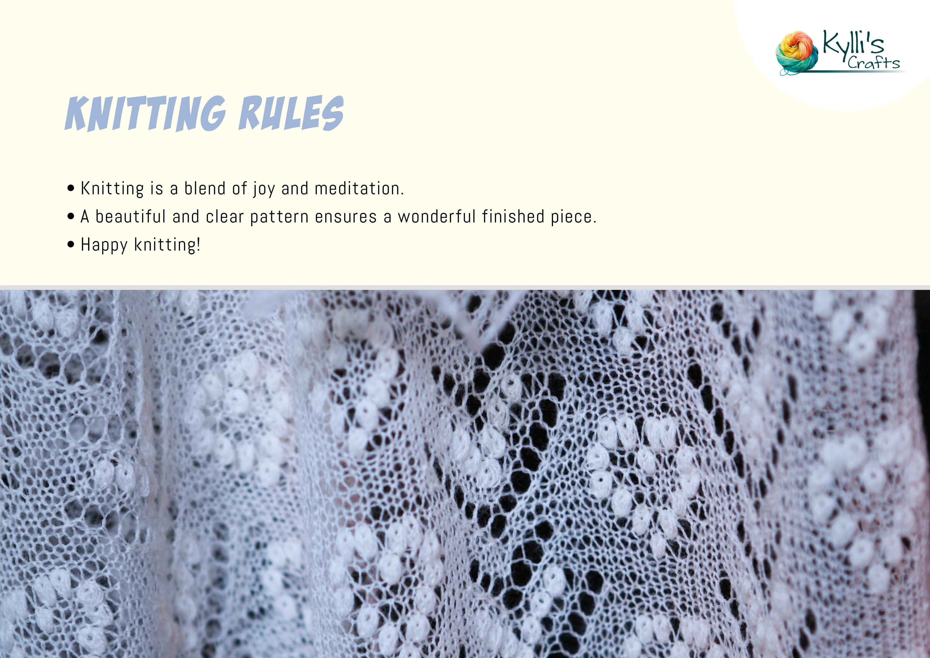 The sample shawl was fully designed and hand-knitted by me.