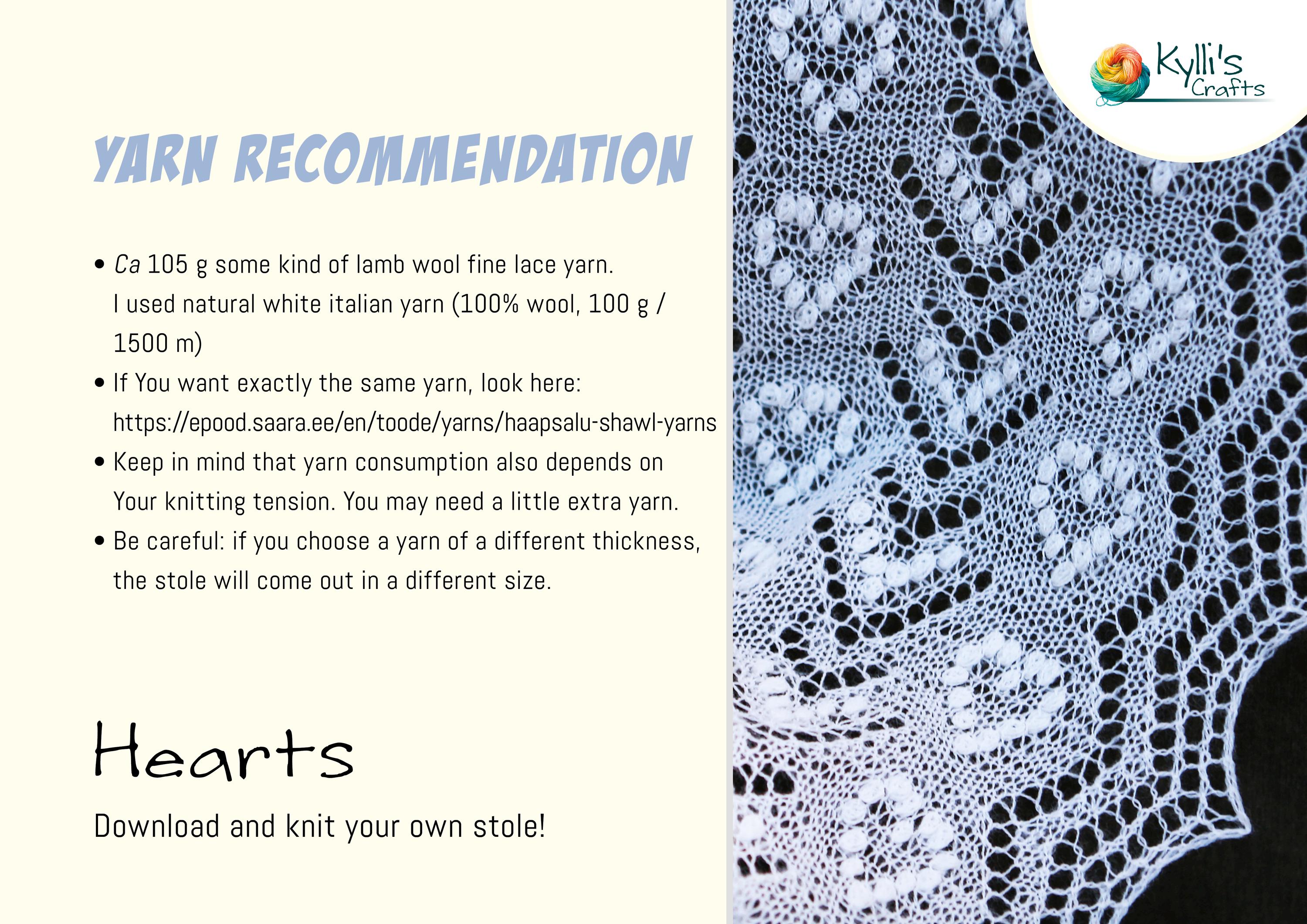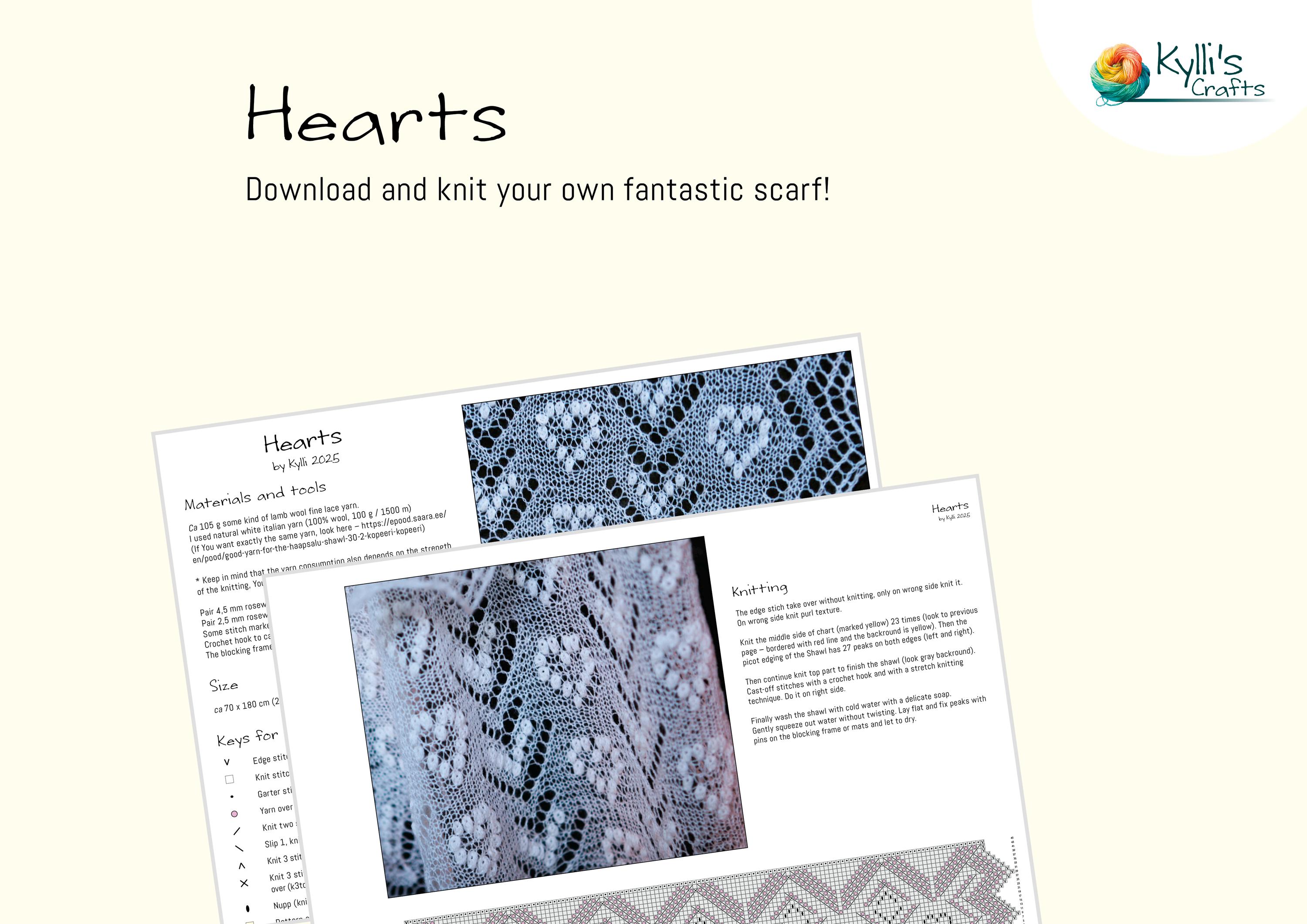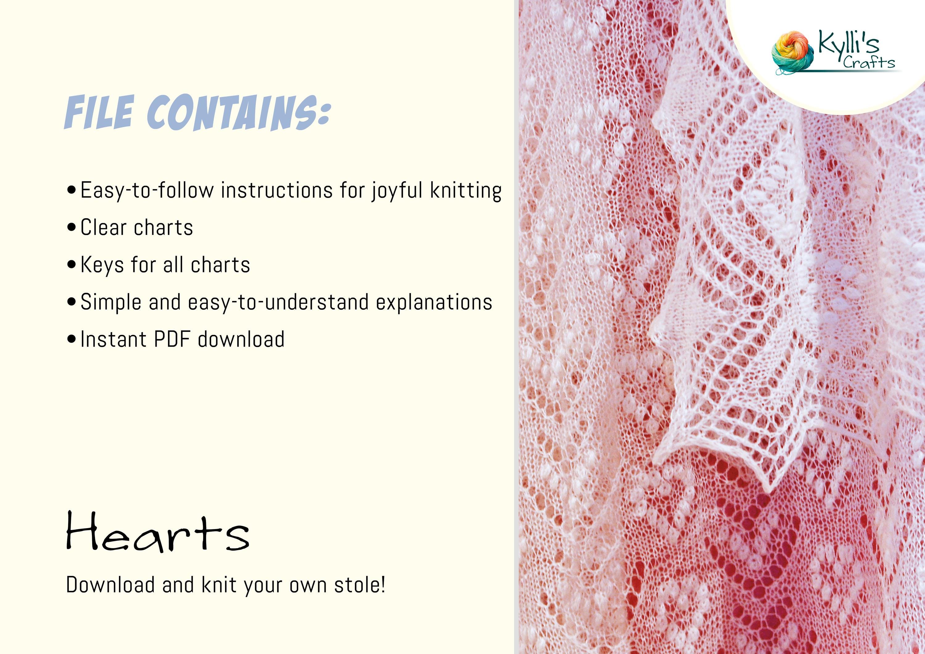 PATTERN for Hand Knitted White Lace Shawl “HEARTS”
