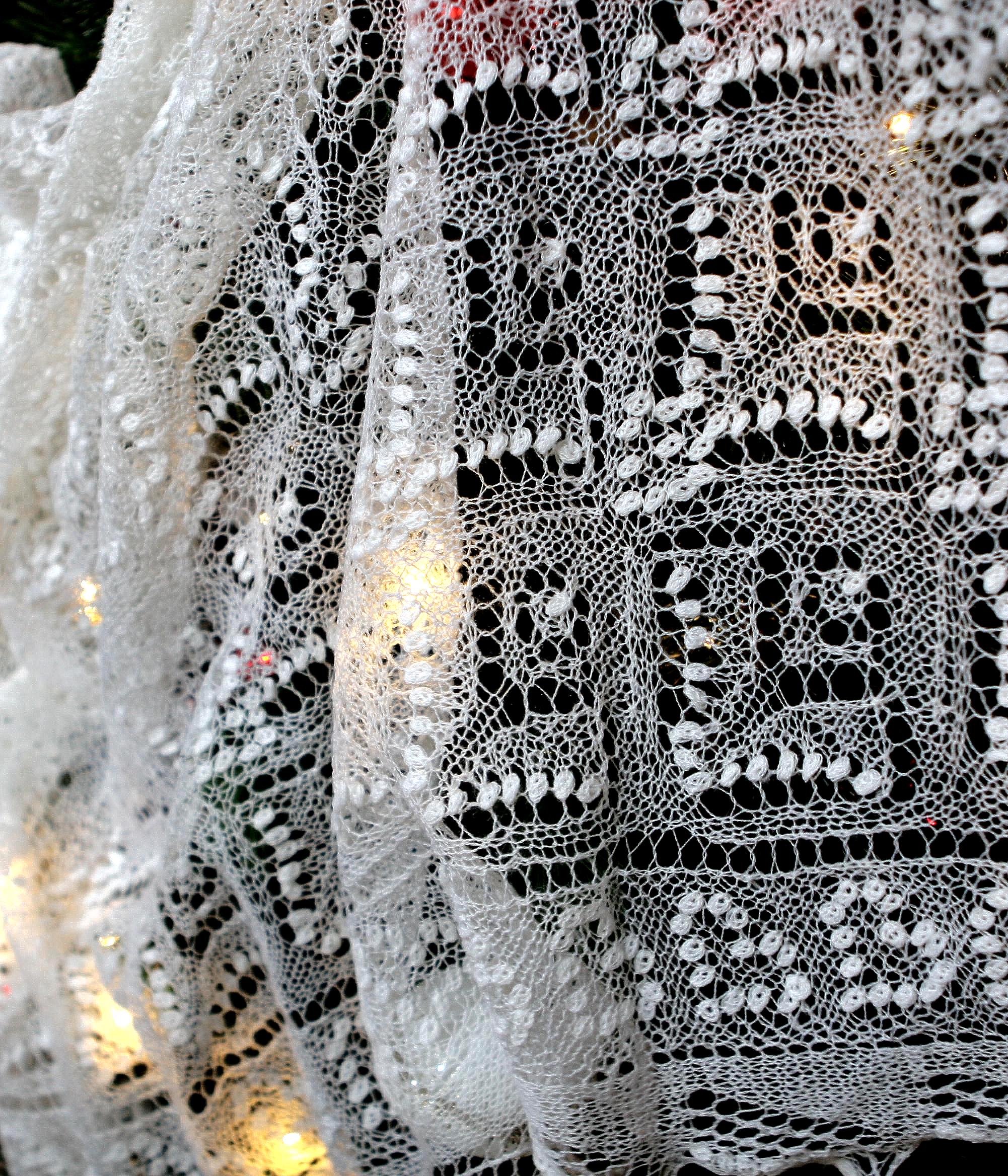 This shawl is knitted using luxurious lace lamb wool yarn (100 % lamb wool). Very fine yarn makes this scarf comfortable to wear and is suitable for wedding. Color – bright white.