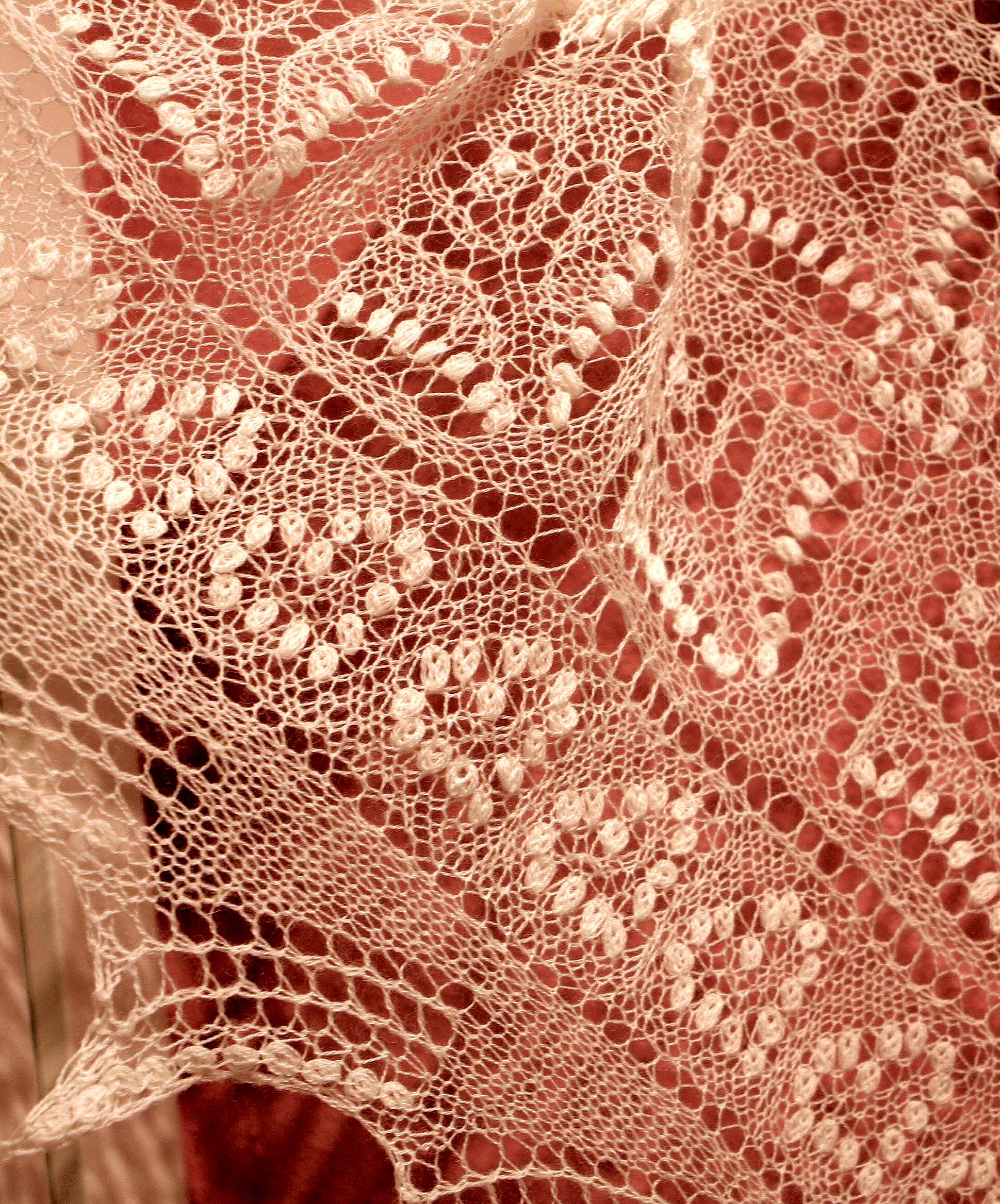 Luxurious and beautiful hand knitted lace shawl contains Estonian nupps and Shetland borders.
