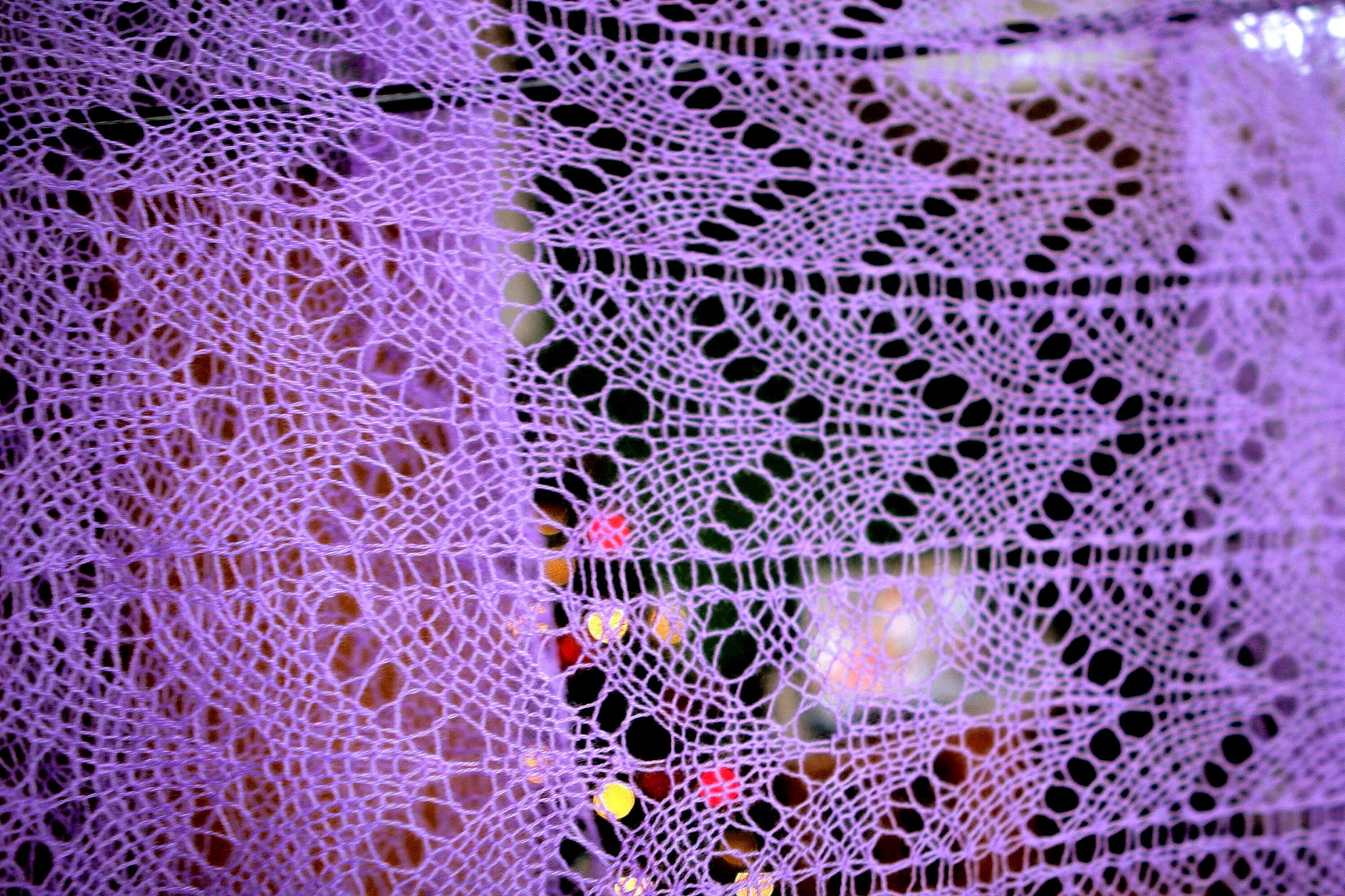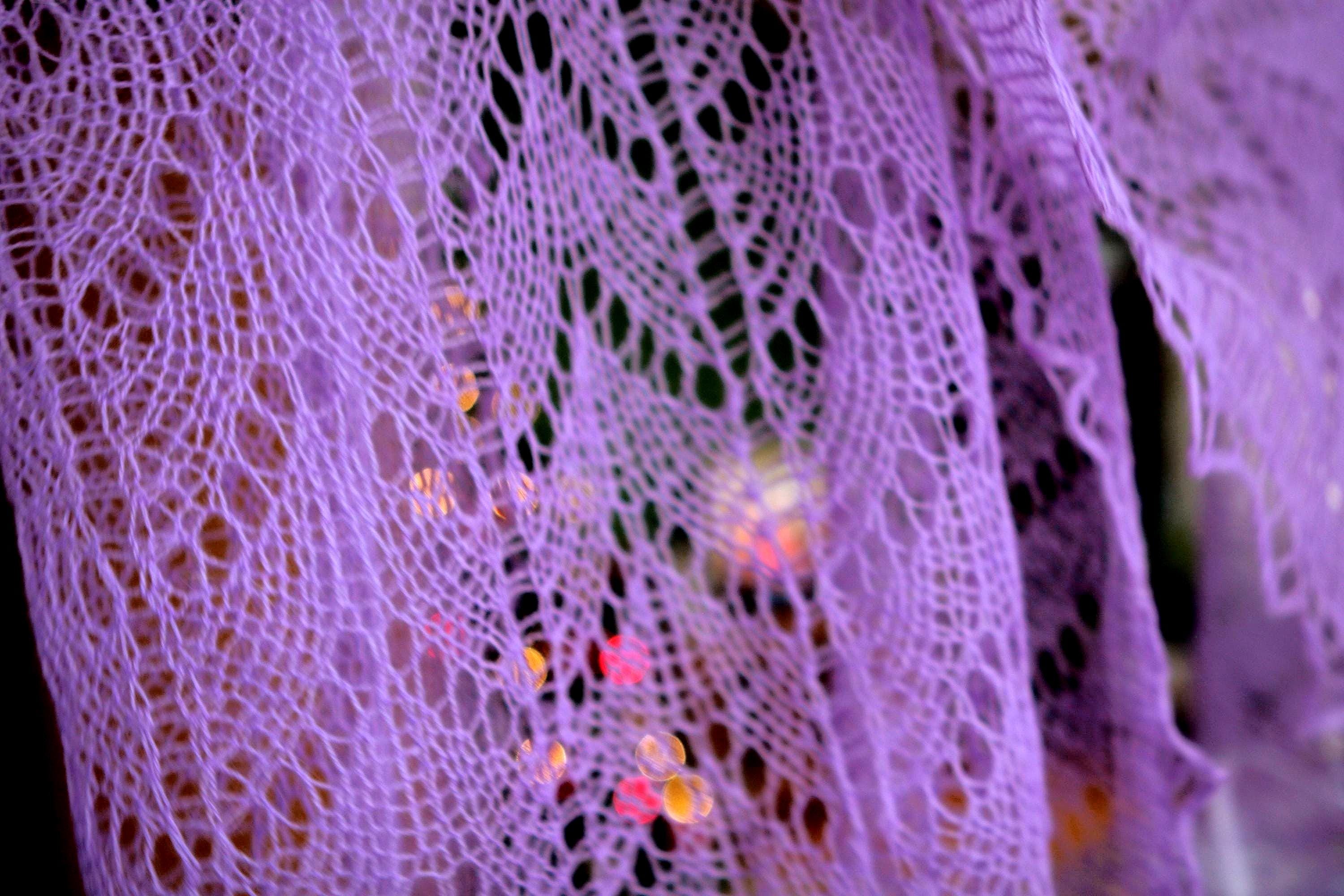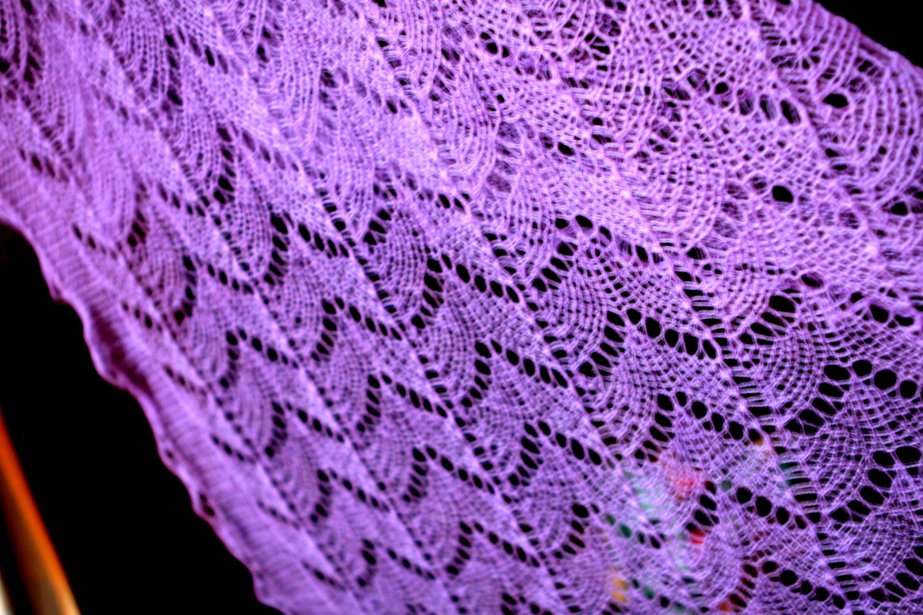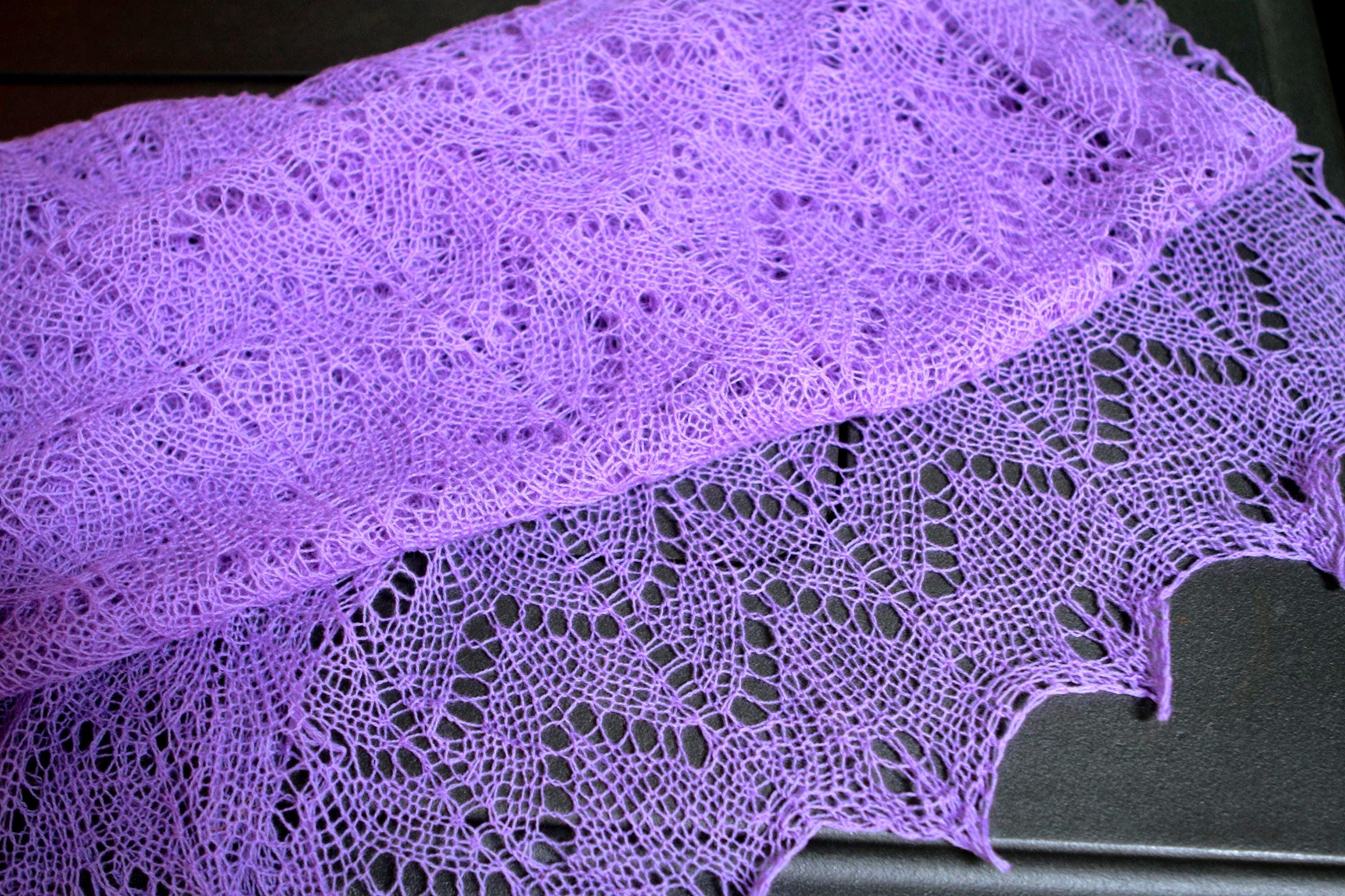 Hand Knitted Merino Lace Shawl "Lilac Waves"