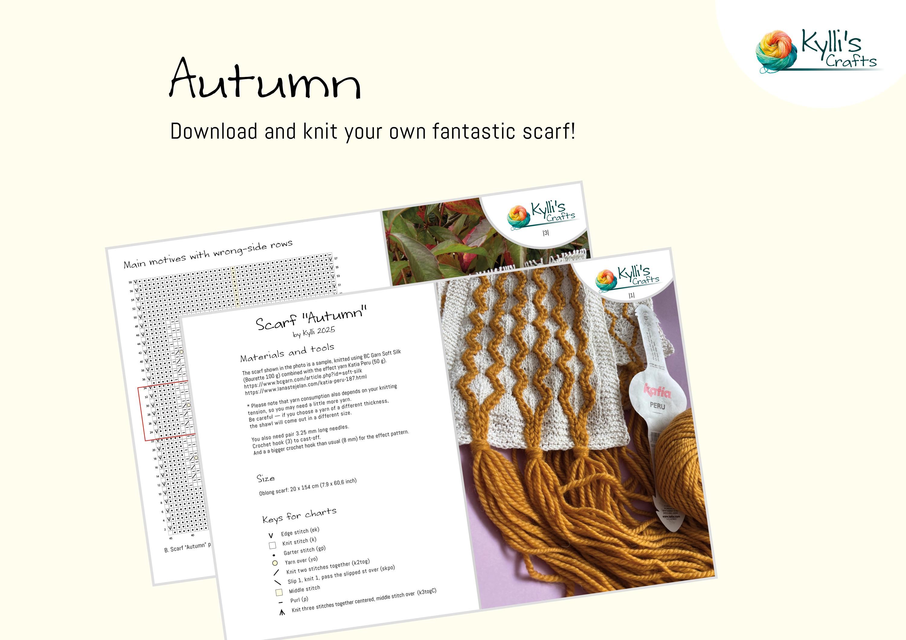 Pattern for Hand Knitted Scarf “Autumn” (PDF)