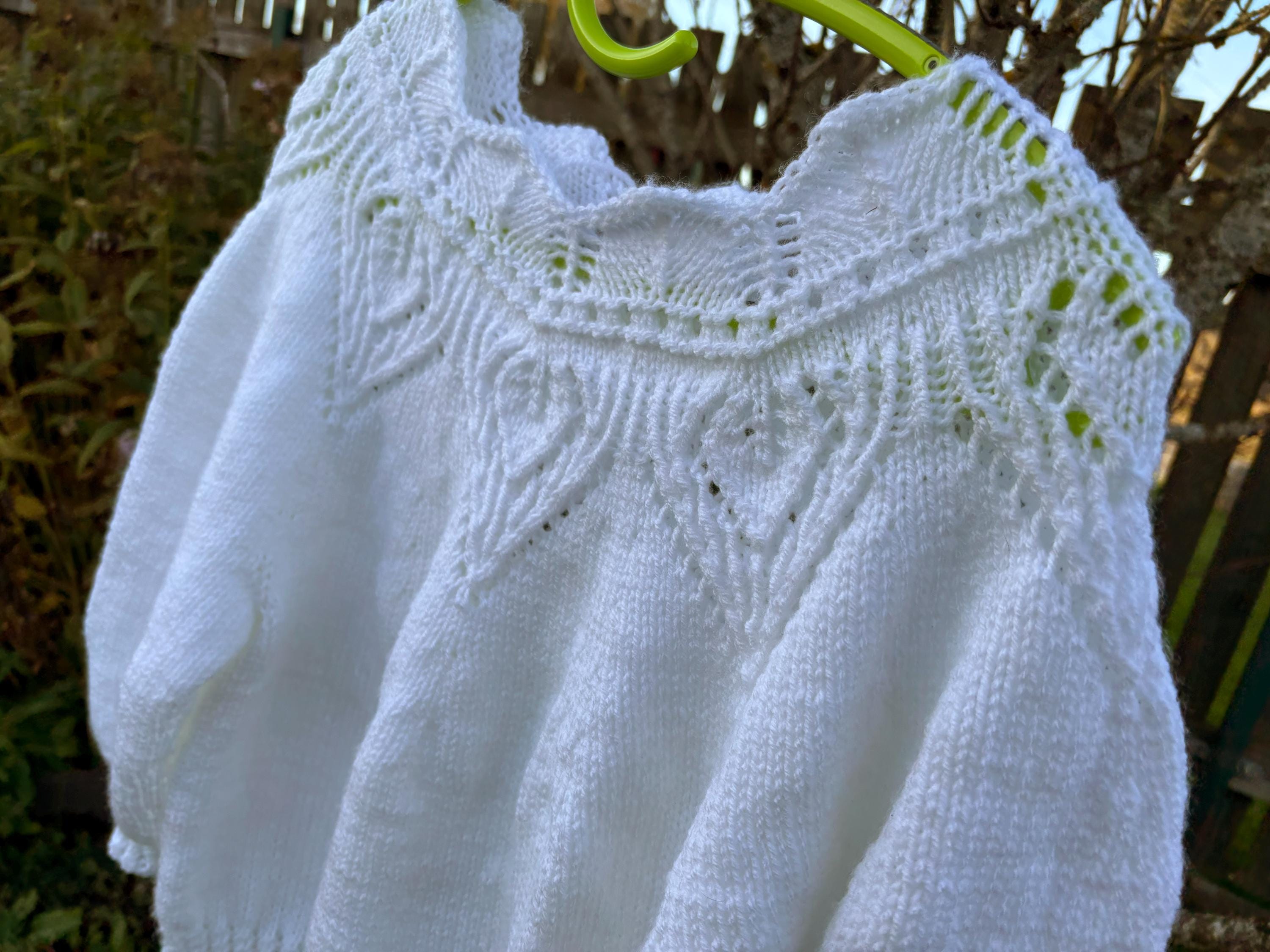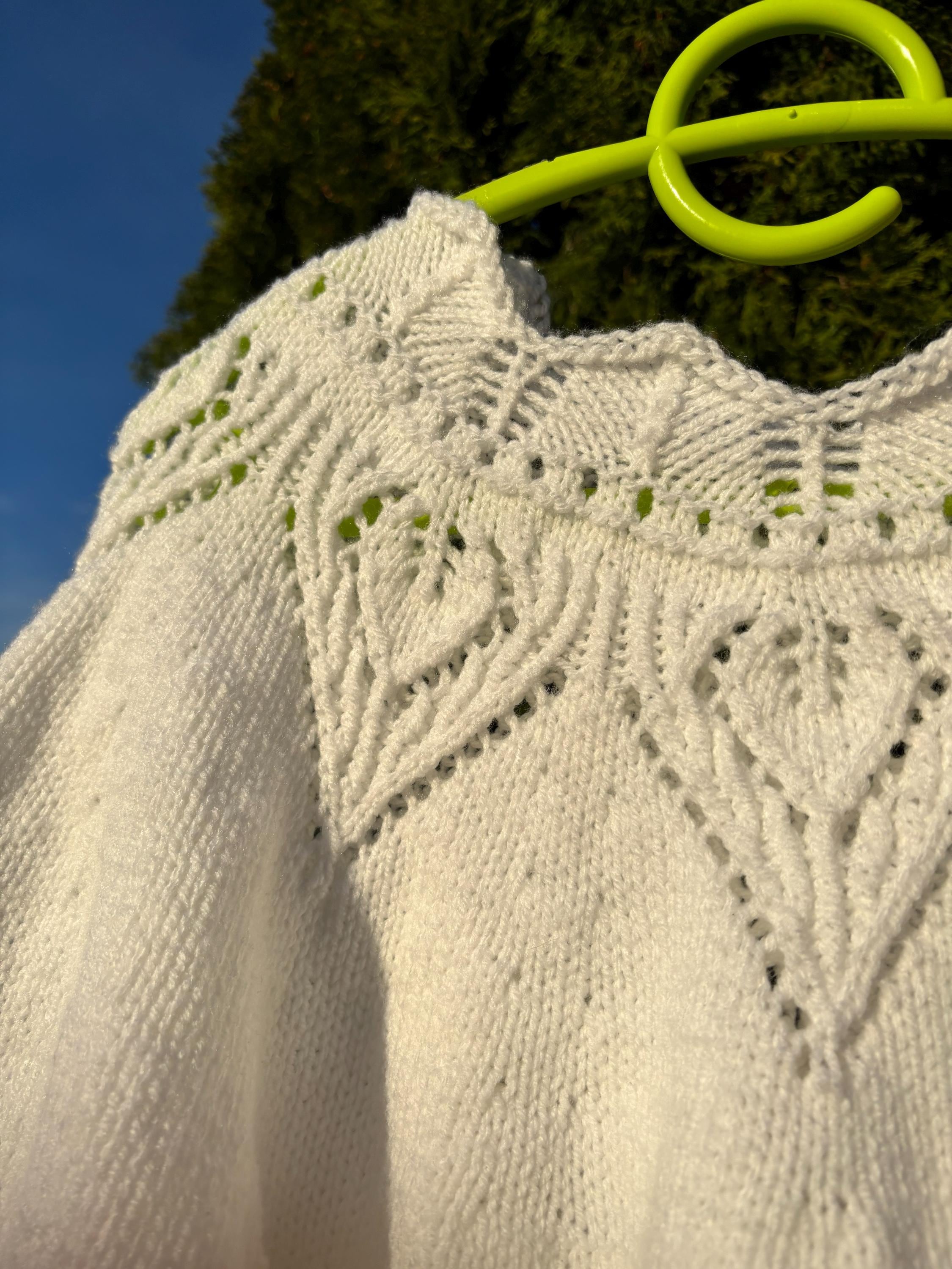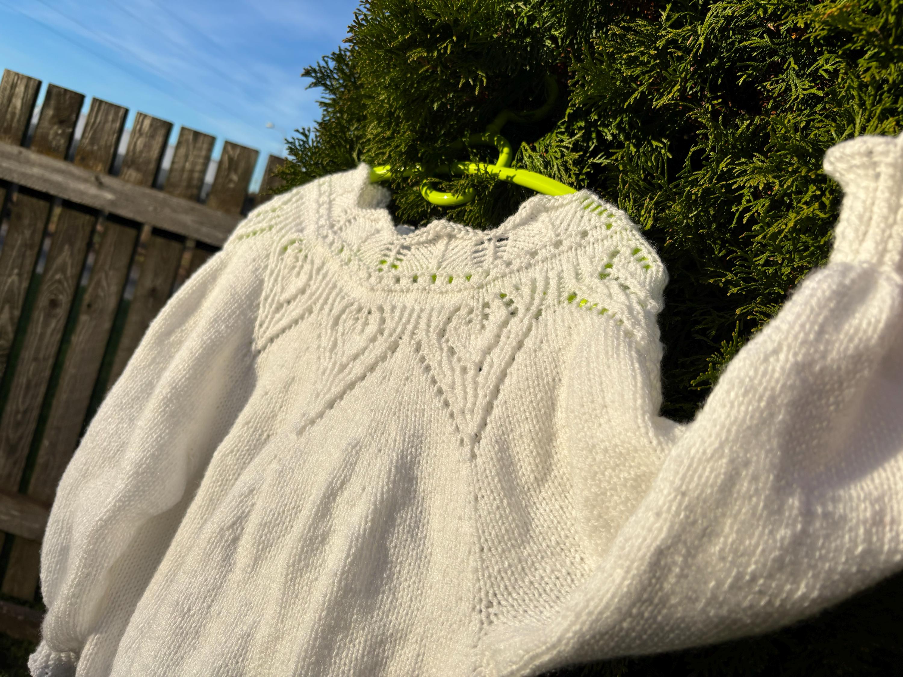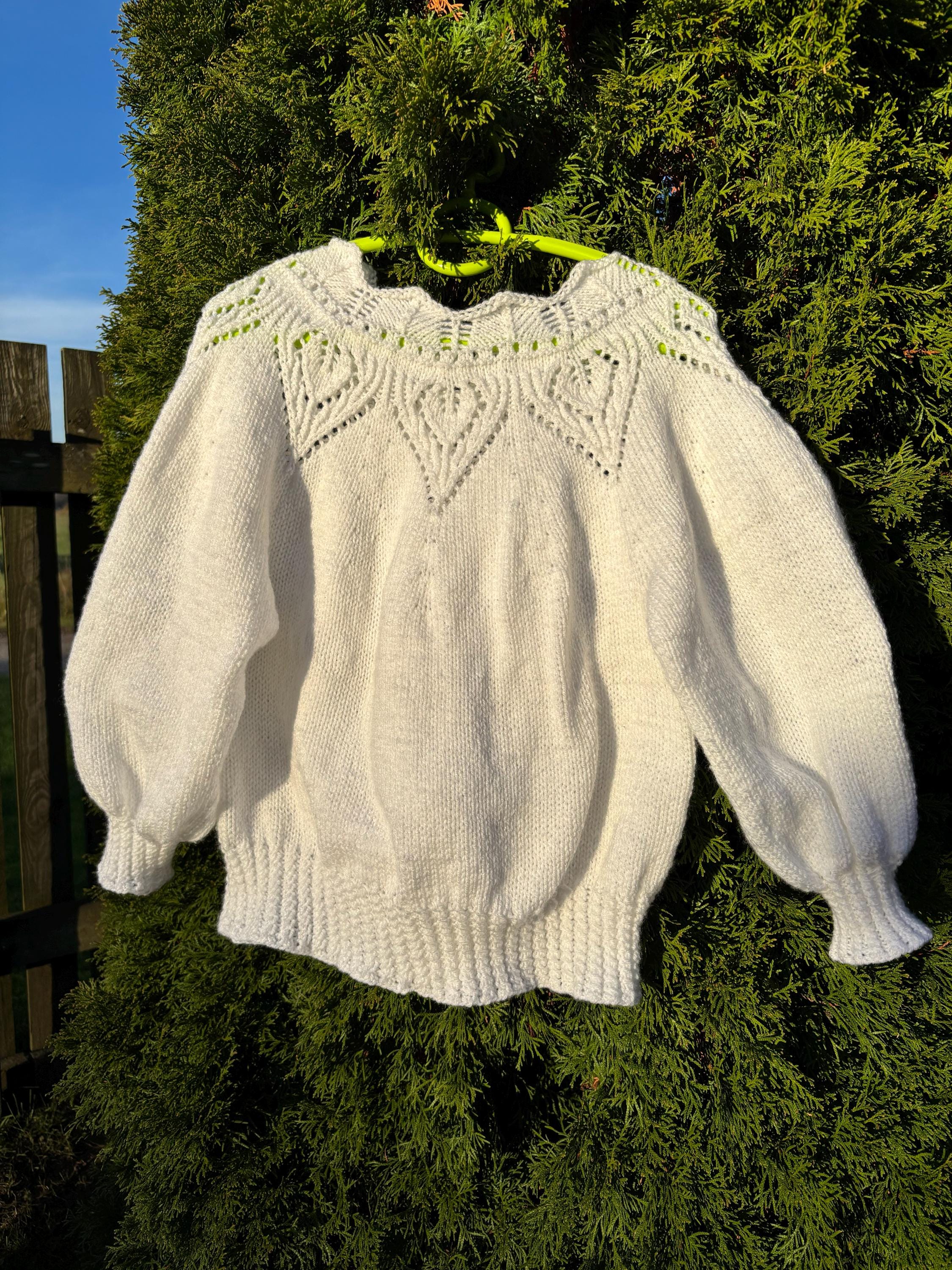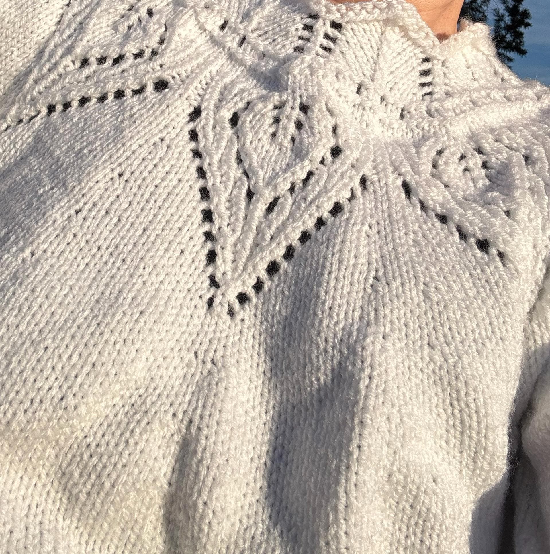 Knitting Pattern for Fluffy Three-quarter Sleeves Blouse “Classy White Autumn”, PDF