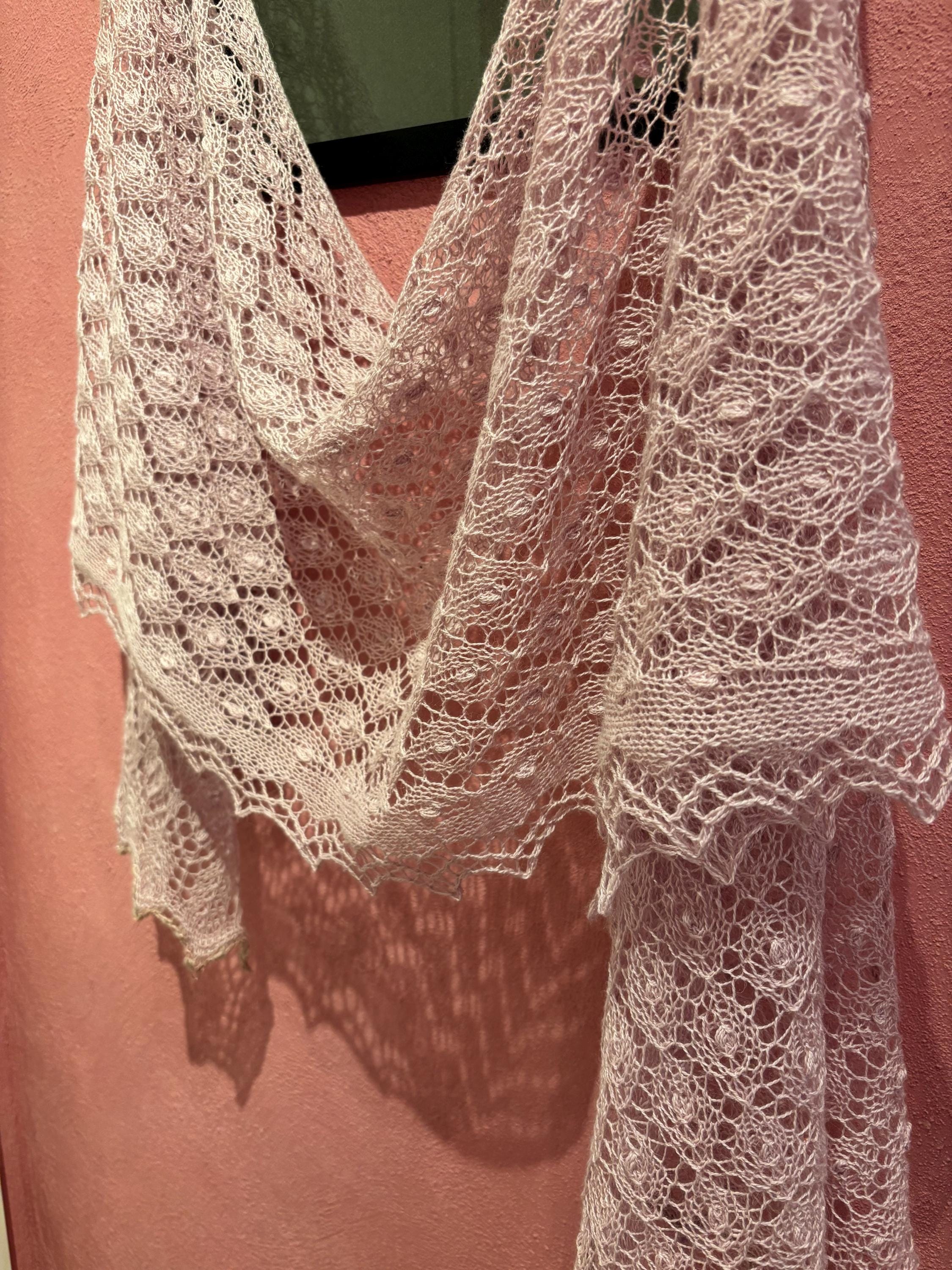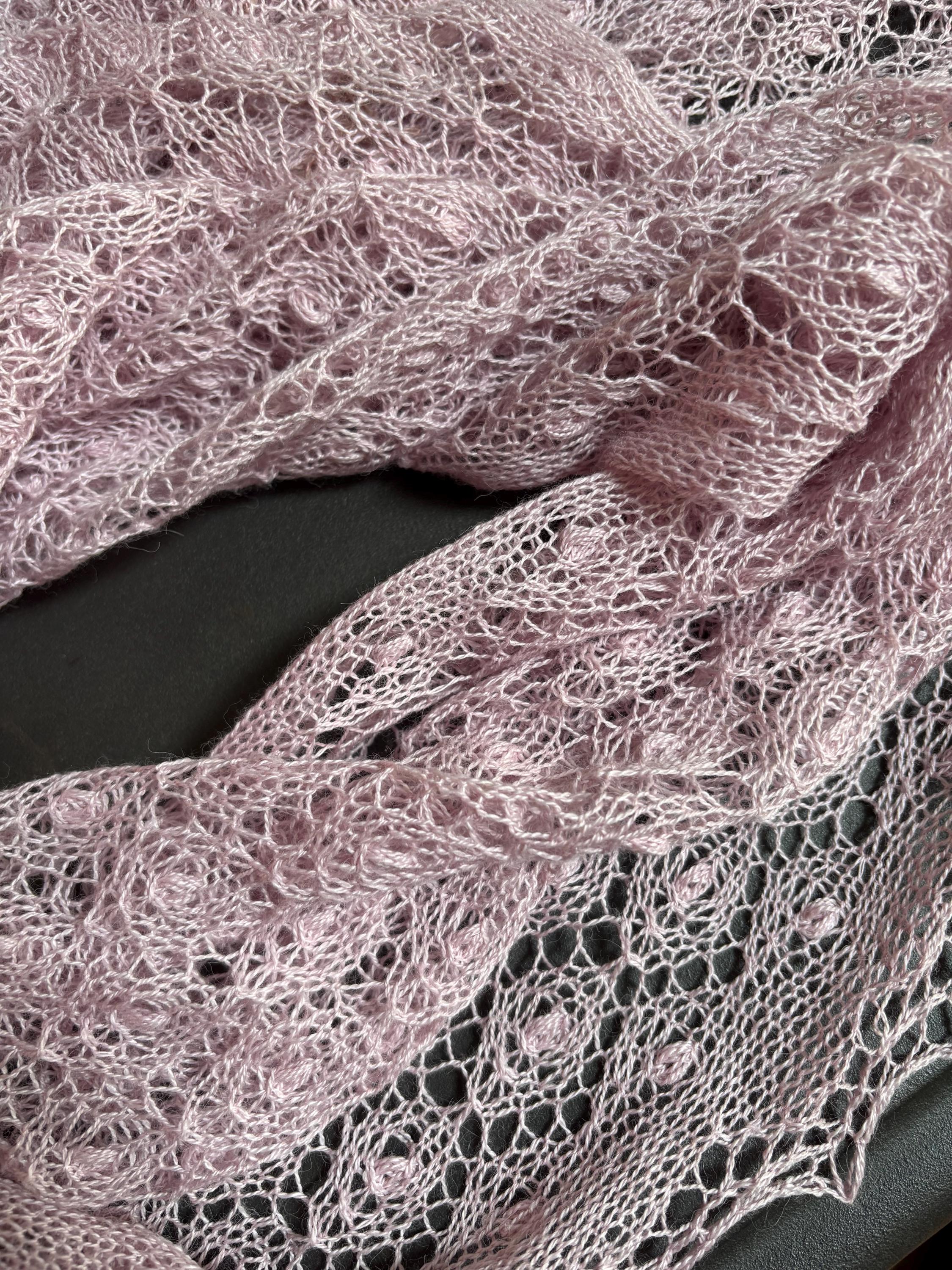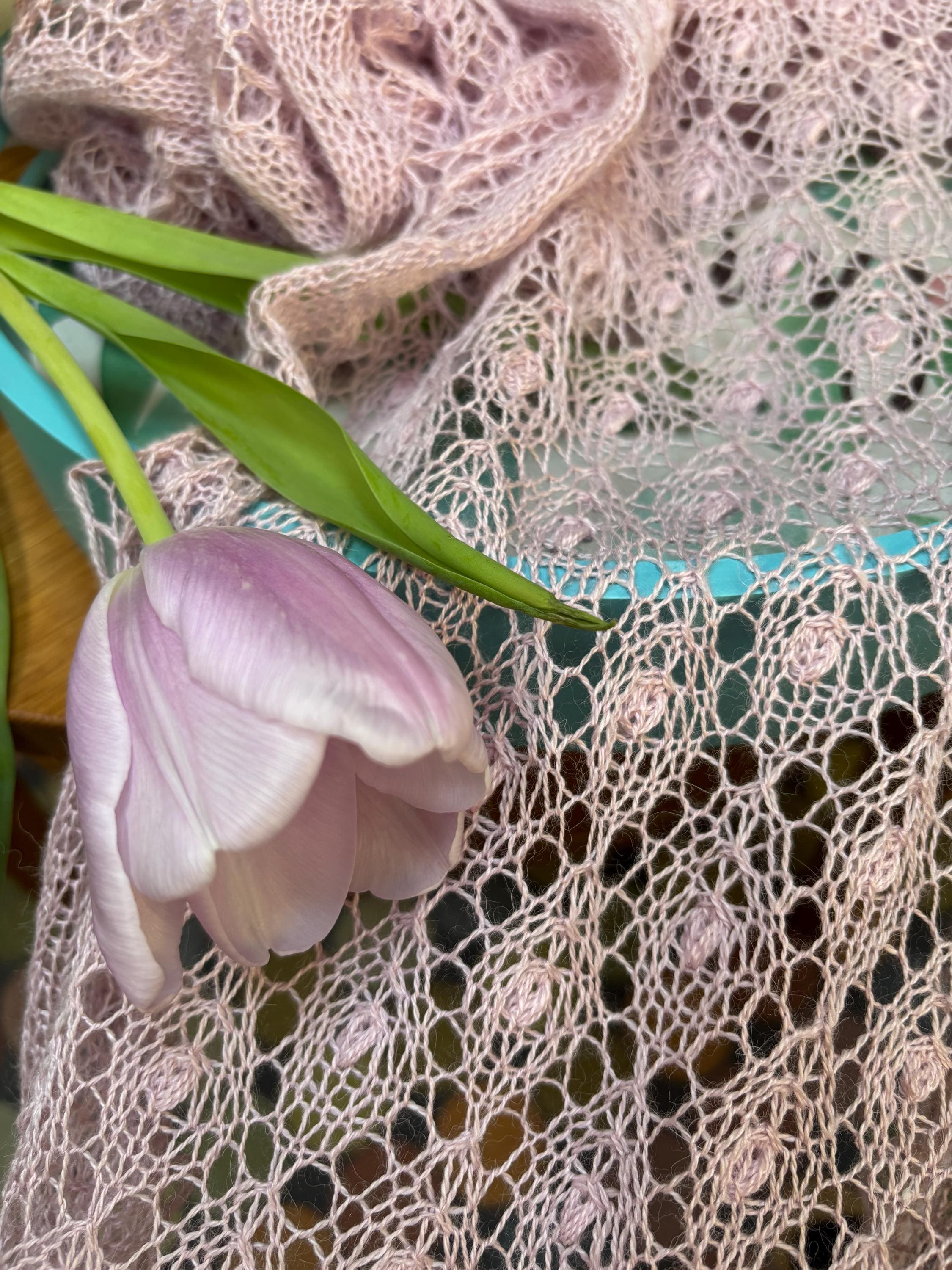 This sawl is knitted using yarn 'Haapsalu Shawl' (100 g = ca 1400 m).
