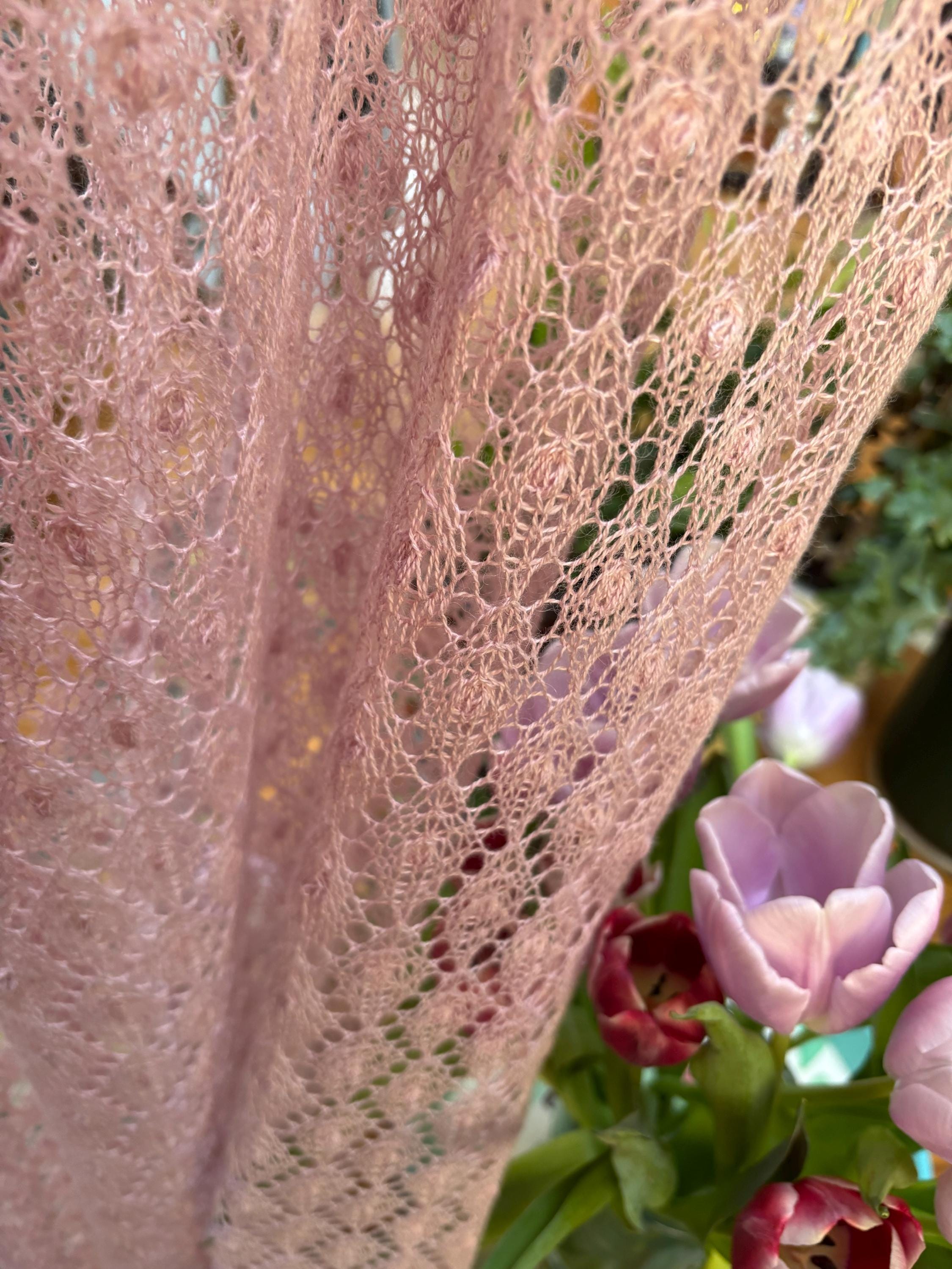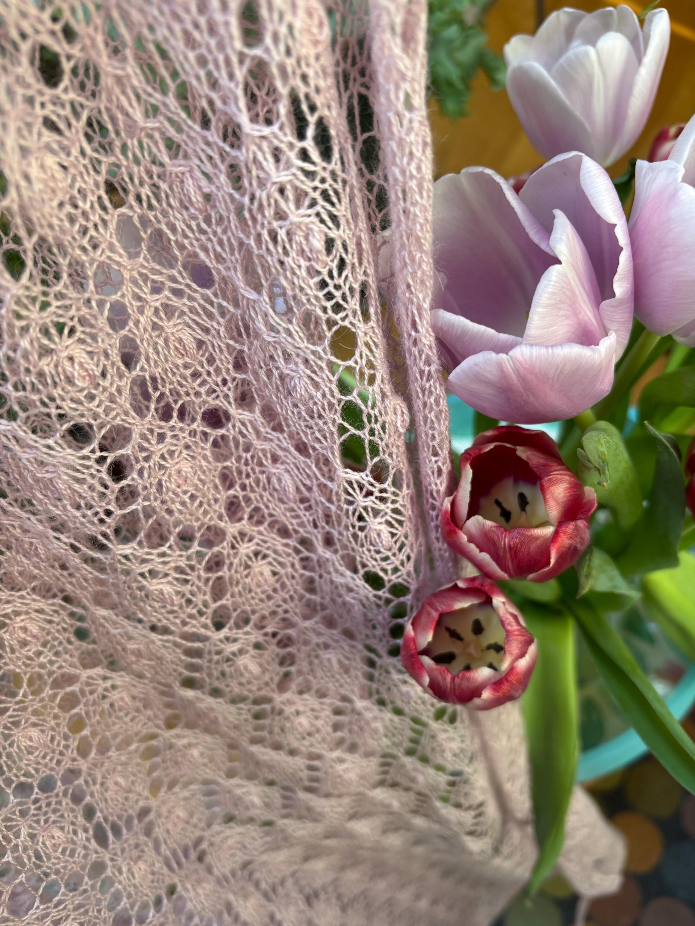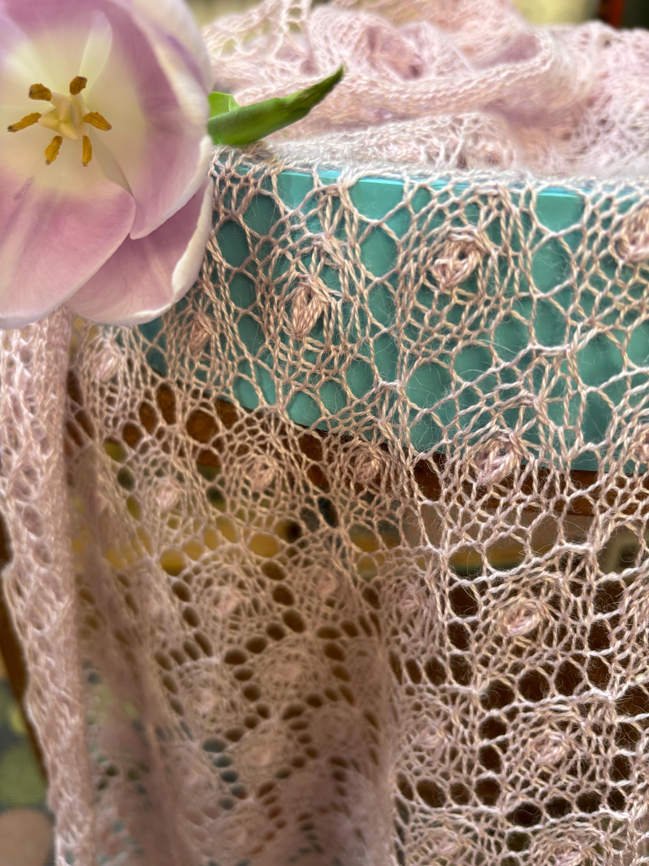 This sawl is knitted using yarn 'Haapsalu Shawl' (100 g = ca 1400 m).