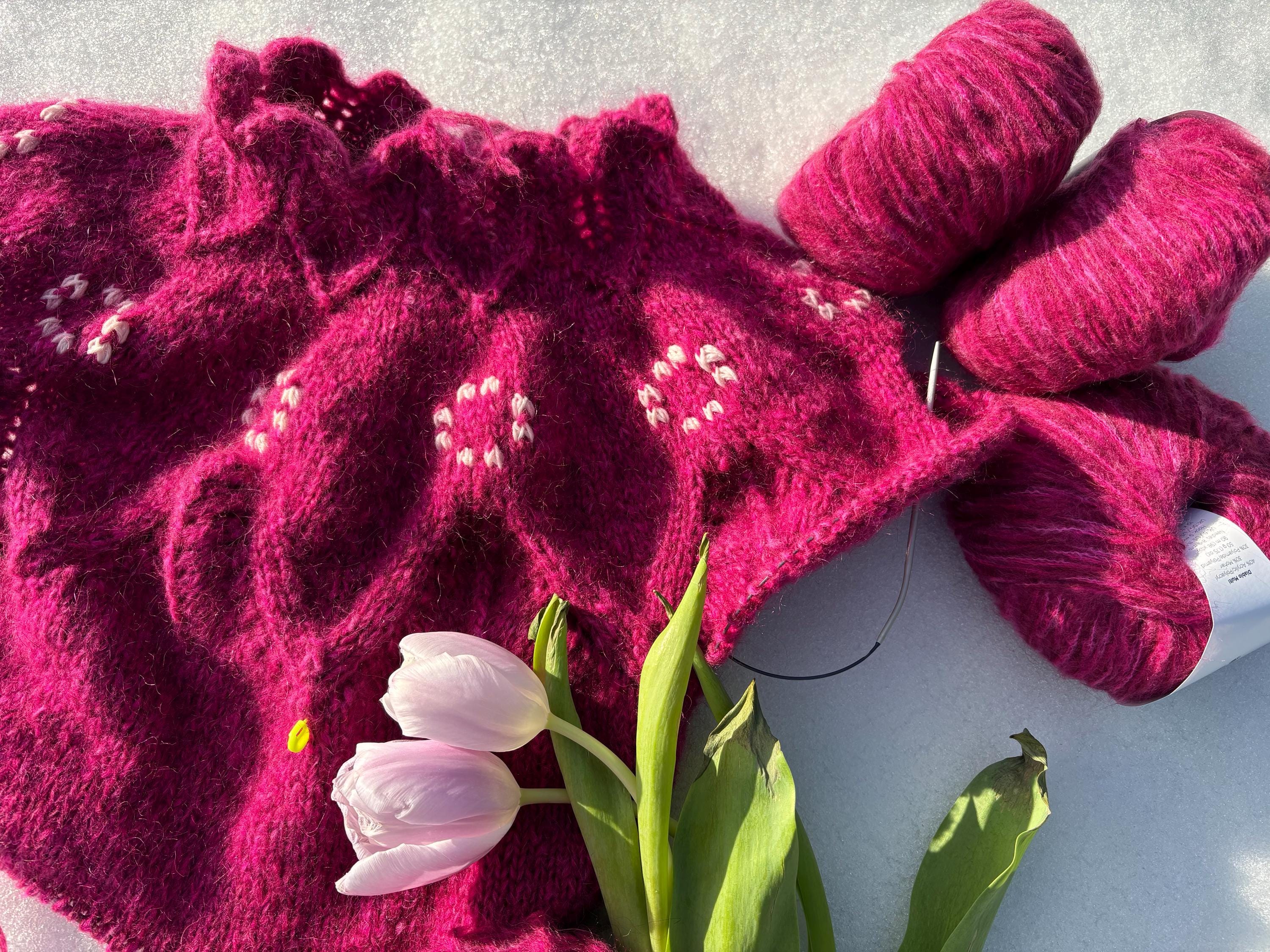 Soft, airy and incredibly gentle to touch — this sweater is hand-knitted from a luxurious blend of mohair wool yarn Diablo from Hobbii.