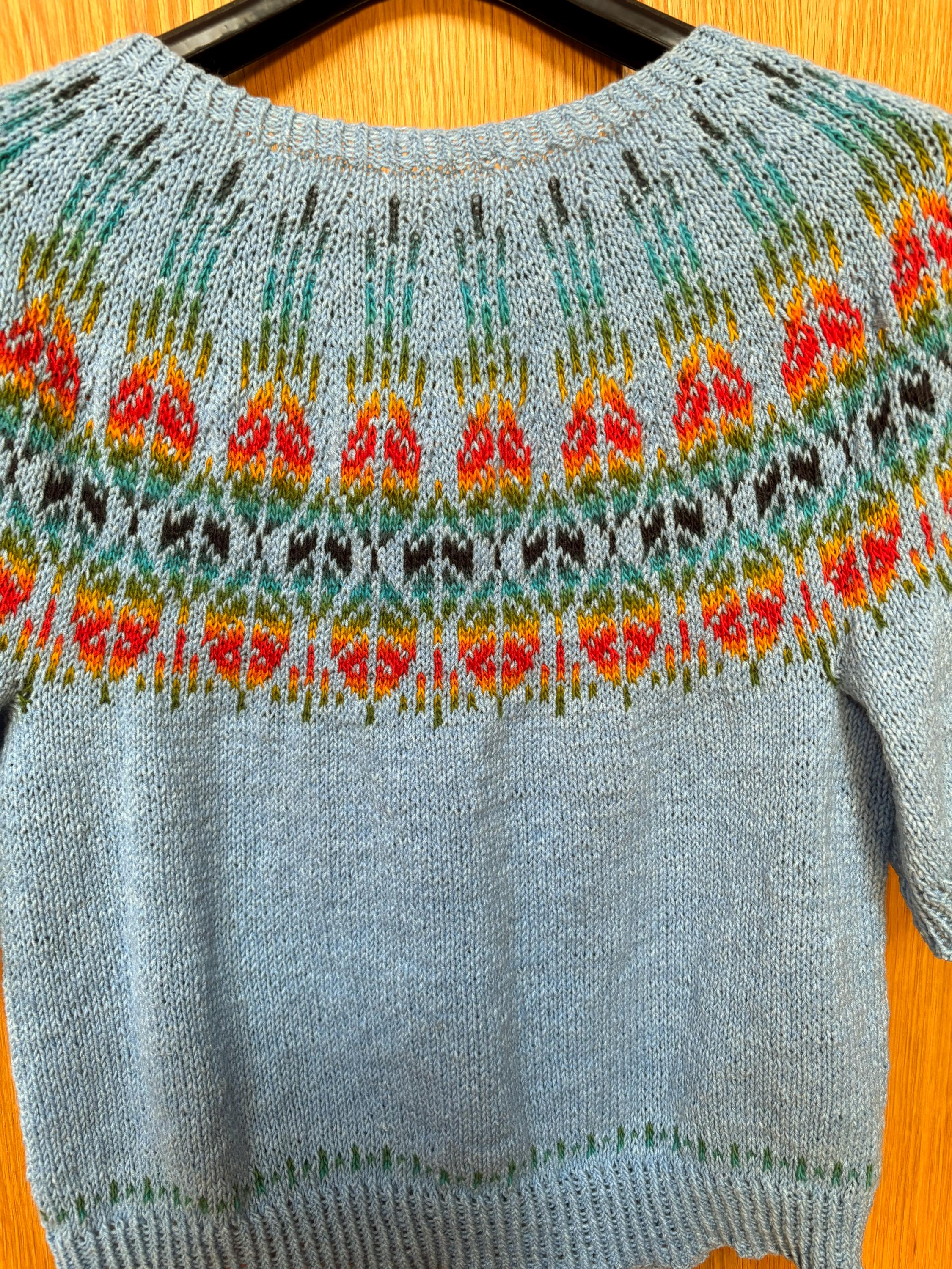 To keep the sweater beautiful you should prefer hand wash it in cold water with a delicate soap. Gently squeeze out water without twisting. Rinse in water of the same temperature. Lay flat and fix ends with pins to dry. Only gentle ironing through a wet cloth.