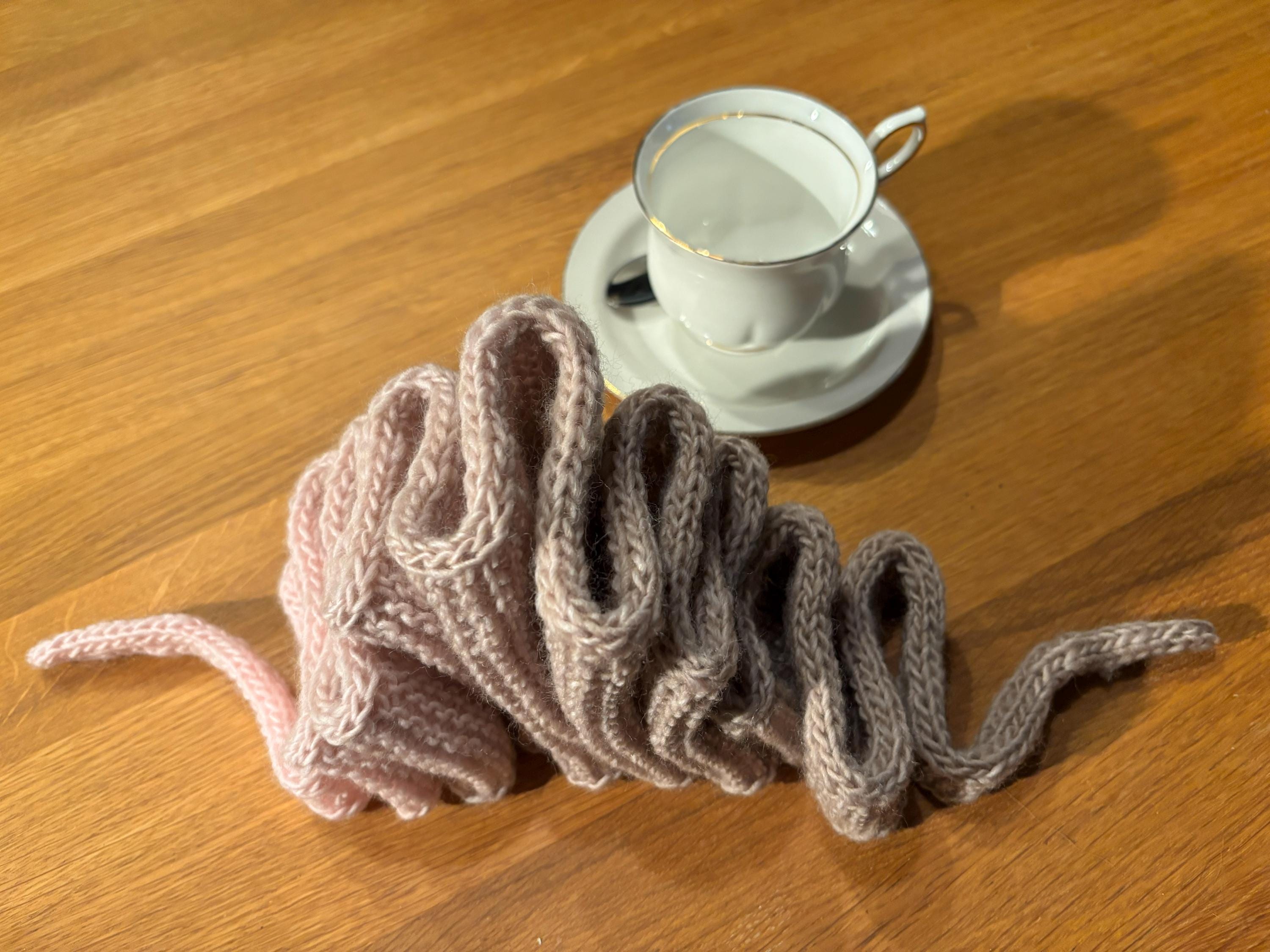 This time, I wanted to knit something new – something I hadn’t done before, yet still a little different from the others. I chose a luxurious merino–cashmere yarn with a beautiful color gradient and finally decided to knit the Sophie scarf. But as I looked at the other versions, I felt it needed more length – so you don’t have to pull the knot tightly under your chin. Instead, it can be tied with an elegant, soft drape, making everything look more refined. It was a challenging task. I came up with my own formula, and by knitting according to it, the scarf turned out to be the perfect length – 170 cm. Lovely. If you’d like this scarf for yourself, click through to the shop – it’s still available. If you’d prefer a slightly different color, but in the same longer style with a cashmere yarn gradient, feel free to get in touch – I’ll knit one just for you.